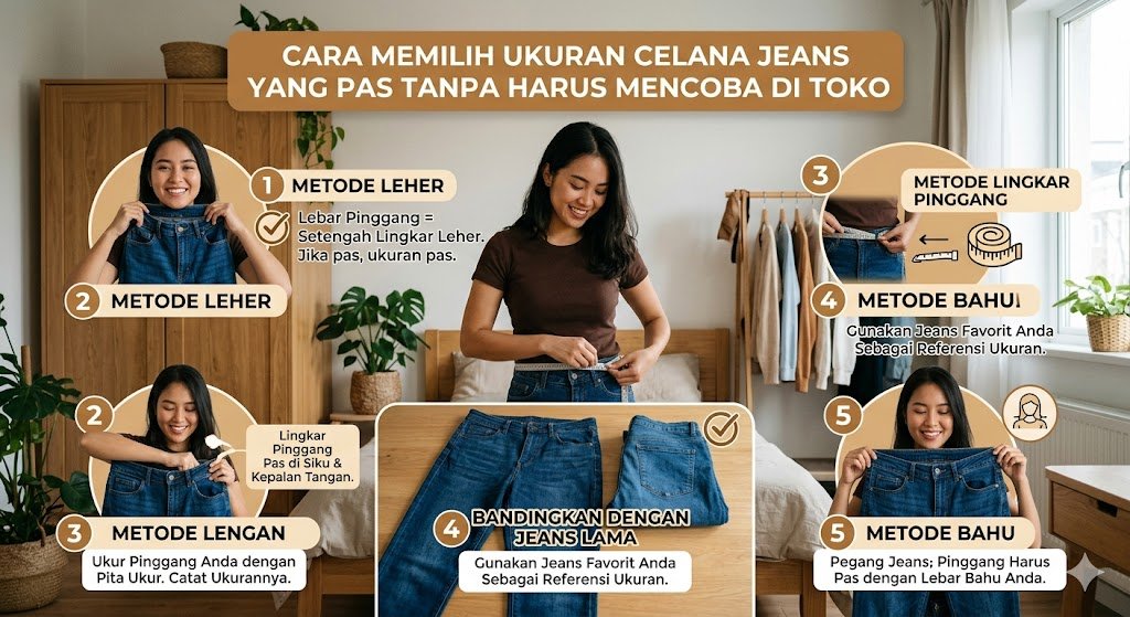 Membeli celana jeans secara daring atau saat terburu-buru di toko seringkali menjadi tantangan tersendiri. Ukuran standar antar merek terkadang berbeda jauh, sehingga angka di label tidak selalu bisa menjadi patokan utama. Namun, Anda tidak perlu khawatir harus bolak-balik ke ruang ganti. Ada beberapa teknik praktis dan akurat yang bisa Anda gunakan untuk memastikan celana tersebut pas di badan hanya dengan modal insting dan sedikit trik fisik.