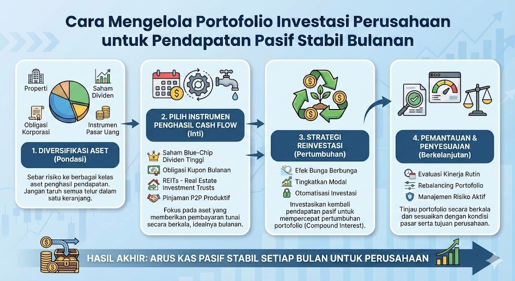 Mengelola keuangan perusahaan bukan hanya sekadar memastikan arus kas operasional berjalan lancar, tetapi juga tentang bagaimana mengoptimalkan surplus dana agar menghasilkan nilai tambah. Bagi banyak perusahaan, membiarkan dana mengendap di rekening giro tanpa imbal hasil yang kompetitif adalah sebuah kerugian tersirat. Strategi mengelola portofolio investasi perusahaan untuk menghasilkan pendapatan pasif bulanan kini menjadi tren yang krusial untuk memperkuat struktur finansial dan memberikan bantalan ekonomi saat kondisi pasar sedang tidak menentu.